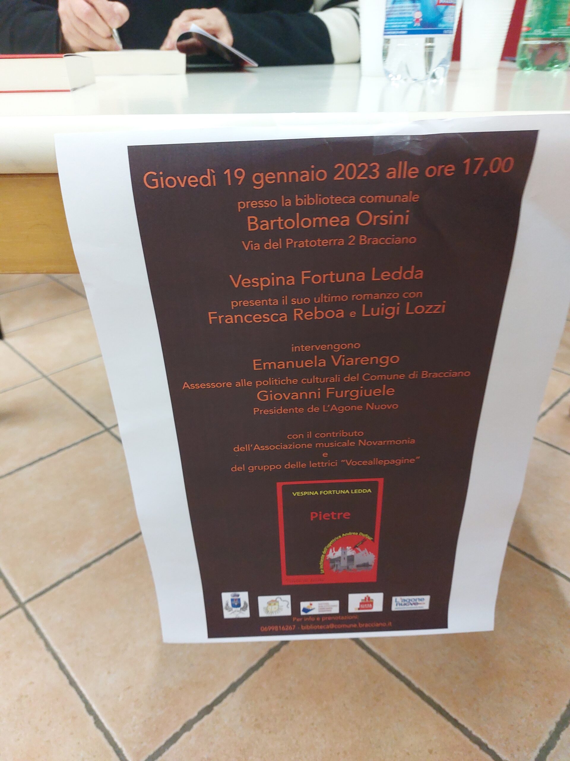 Si è conclusa la presentazione dell’ultimo libro, in ordine cronologico, di Vespina Fortuna Ledda intitolato “Pietre” nella biblioteca comunale di Bracciano.