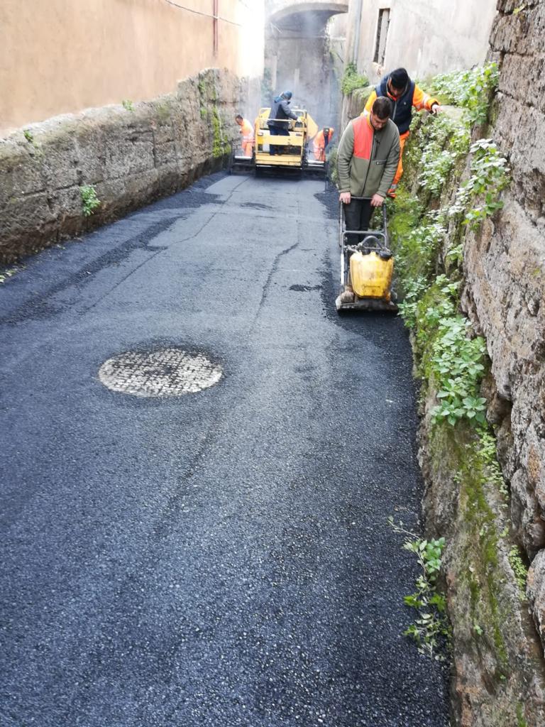 Manto stradale nuovo di zecca al Borgo di Ceri. La salita d’accesso della Frazione etrusca, e il selciato all’interno del Borgo, infatti, dopo i lavori di realizzazione della rete fognaria svolti da Acea e fortemente voluti dall’Amministrazione comunale, che ha dunque portato alla realizzazione del primo depuratore della storia nella Frazione di Ceri, così come previsto nella convenzione tra Amministrazione comunale e società di servizi, sono stati completamente riasfaltati, chiaramente a spese di Acea Ato 2 e senza nessun costo per il Comune e dunque per i cittadini.