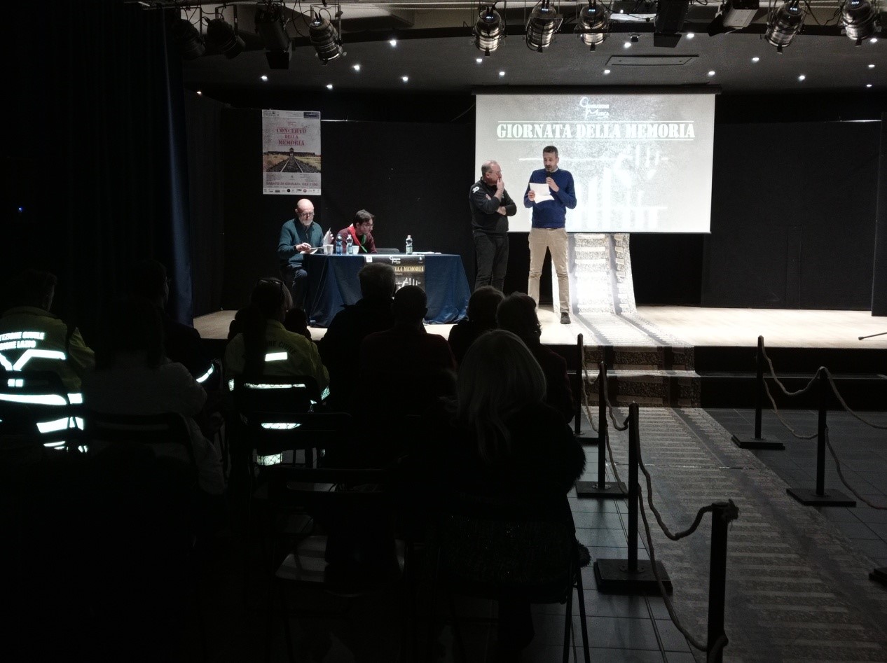 Ha specificato che la data del 27 gennaio scelta per commemorare la Shoah riporta emblematicamente allo stesso giorno del 1945 quando furono aperti i cancelli di Auschwitz. Di seguito lo scrittore Arturo Belluardo ha selezionato parole d’eccellenza per veicolare emozioni relativamente al rischio dell’oblio e alla necessità della resistenza del ricordo della persecuzione razziale. In un silenzio incorrotto gli spunti offerti hanno maturato un successivo confronto tra i presenti sulla tematica trattata; particolarmente toccante è stata la testimonianza di un’anziana insegnante presente, che con una compostezza e un garbo d’altri tempi, ha raccontato episodi di vita di chi nel lager c’è stato e la sua impossibilità a dimenticare. Ma la memoria passa anche attraverso il consolidamento delle emozioni filtrate dai sensi, per cui ancor più encomiabile per la finalità prefissata, è stato il concerto della Memoria del giorno successivo, sabato 28, messo in scena sul medesimo palcoscenico del teatro de Foucauld; un evento che ha restituito con fedeltà la più grande tragedia umana del secolo scorso, attraverso un percorso musicale integrato da immagini e voci narranti.