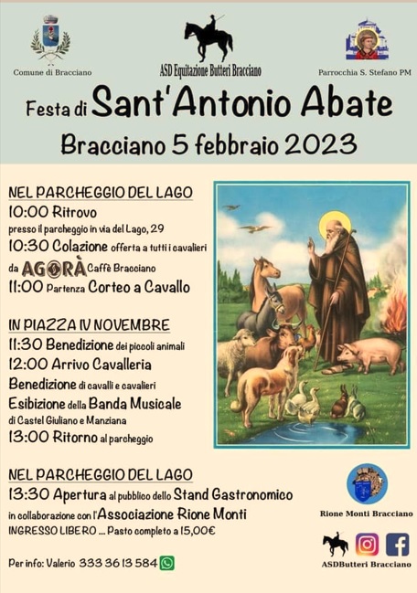 Nella stessa giornata ci sarà la benedizione degli animali organizzata dalla associazione asd equitazione butteri di Bracciano che ha organizzato per l’occasione un programma ricco di eventi.