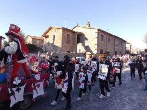 Ognuno ha sperato, almeno per un pomeriggio, che tutti i cannoni del mondo potessero sparare solo coriandoli e fumi colorati, rievocando il lancio di fiori e allori degli antichi Greci, e la leggerezza delle stelle e dei sogni. La contrada Casenove con il carro “La casa di carta” e lo sciame dei personaggi della serie tv al seguito; appresso la golosità della contrada Castagno che ha realizzato il carro “Masterchef”, e poi ancora i “Bufferi”, i fantomatici puffi dell’associazione Butteri, la gondola veneziana della contrada Carraiola, con un corteo di preziose maschere veneziane e infine “Alice in Wonderland” della contrada Centro. Una bella giornata di sole, sorrisi, leggerezza, con il vento fresco a spazzare via pensieri e preoccupazioni, fino al tramonto quando sul corso del paese sono rimasti solo miliardi di coriandoli colorati, uniche vittime che sa fare l’allegria e lo spirito di festa. Le uniche vittime che ogni donna e uomo sensato del mondo vorrebbero contemplare ancora.