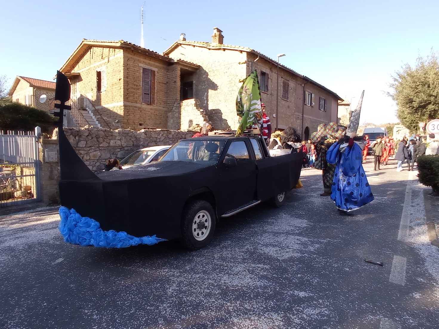 Ognuno ha sperato, almeno per un pomeriggio, che tutti i cannoni del mondo potessero sparare solo coriandoli e fumi colorati, rievocando il lancio di fiori e allori degli antichi Greci, e la leggerezza delle stelle e dei sogni. La contrada Casenove con il carro “La casa di carta” e lo sciame dei personaggi della serie tv al seguito; appresso la golosità della contrada Castagno che ha realizzato il carro “Masterchef”, e poi ancora i “Bufferi”, i fantomatici puffi dell’associazione Butteri, la gondola veneziana della contrada Carraiola, con un corteo di preziose maschere veneziane e infine “Alice in Wonderland” della contrada Centro. Una bella giornata di sole, sorrisi, leggerezza, con il vento fresco a spazzare via pensieri e preoccupazioni, fino al tramonto quando sul corso del paese sono rimasti solo miliardi di coriandoli colorati, uniche vittime che sa fare l’allegria e lo spirito di festa. Le uniche vittime che ogni donna e uomo sensato del mondo vorrebbero contemplare ancora.