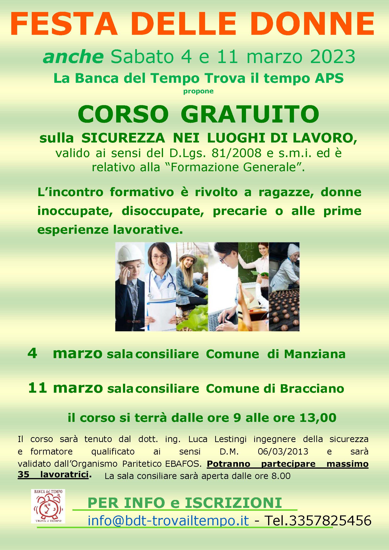 La Banca del Tempo propone un importante corso sulla sicurezza nei posti di lavoro con rilascio del certificato validato dall’Organismo Paritetico EBAFOS
