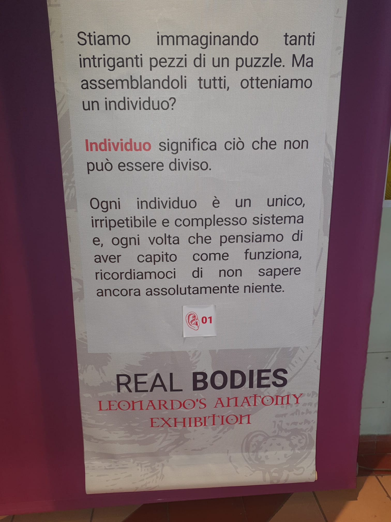 La tecnica utilizzata nella mostra è quella inventata e sviluppata dall’anatomopatologo tedesco Gunther von Hagens che nel 1977 applicò al corpo la plastinazione, sostituendo gli elementi liquidi con polimeri di silicone ed ottenendo così vere e proprie “statue umane”. Divisa in diverse sezioni, l’esposizione consente di osservare direttamente i vari organi del corpo anche con l’ausilio di visori e schermi virtuali. Una mostra itinerante che da anni richiama visitatori in tutto il mondo: l’organismo umano è presentato al pubblico dopo essere stato sottoposto ad uno speciale trattamento di conservazione, privato della cute e collocato in posizioni e posture che intendono simulare quelle tipiche di varie fasi della vita quotidiana.