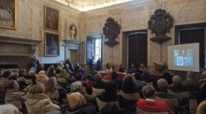 Silvia Sarli illustra la vita di Laura Caterina, prima principessa Altieri a Oriolo. Era nipote del pontefice Clemente X (1590-1676) e fu moglie del primo principe di Oriolo, Gaspare Paluzzi Albertoni. Si può dire che lei fu la prima donna a passare il suo cognome al marito, al quale fece dare il nome Altieri (I-1720). Infatti Laura Caterina fece in modo che il cognome della sua famiglia, compresi i beni e lo stemma, passasse ai Paluzzi Albertoni, che divennero così “Paluzzi Altieri degli Albertoni”. Poi, con l’aiuto di Clemente X, che temeva l’estinzione degli Altieri per mancanza di eredi maschi, convinse la famiglia degli Albertoni a cambiare il loro cognome in Altieri. Il ritratto di Caterina e quelli di altre due nobildonne, forse Laura e Ortensia Mancini, dipinti dall’artista Jacob Ferdinand Voet (1639- 1689) giacevano nel castello di Racconigi (Cuneo); ora i tre ritratti sono a Oriolo e, dopo il convegno, li abbiamo ammirati nella “Sala delle Belle“. Arricchiscono la collezione della “Galleria delle Belle” che era stata realizzata nel Palazzo dallo stesso Jacob Ferdinand Voet verso la fine del Seicento, su commissione del principe Gaspare Altieri.
