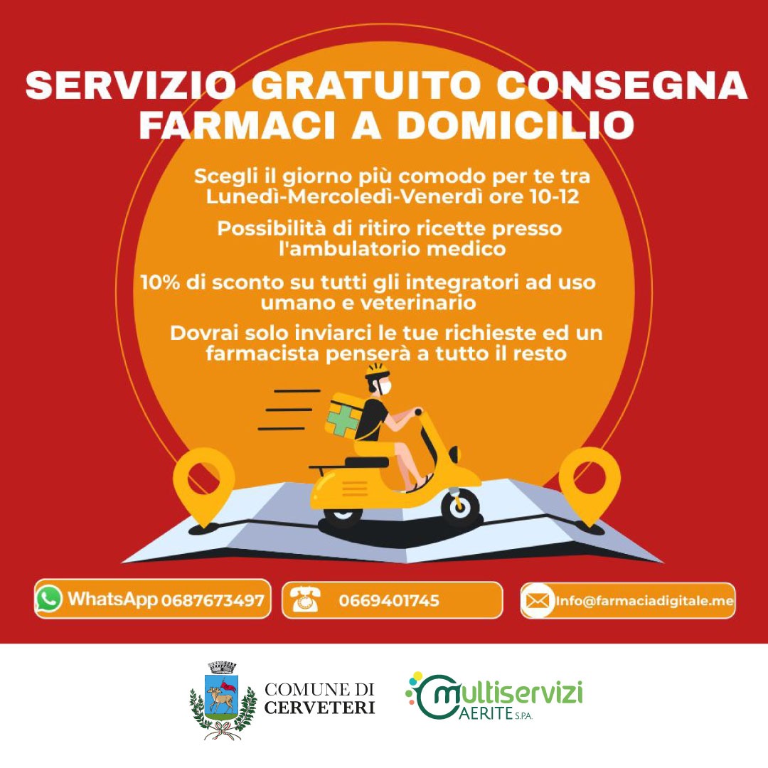 Si estende ulteriormente il servizio gratuito di consegna dei farmaci a domicilio attuato dalla Multiservizi Caerite all’interno del territorio comunale di Cerveteri.