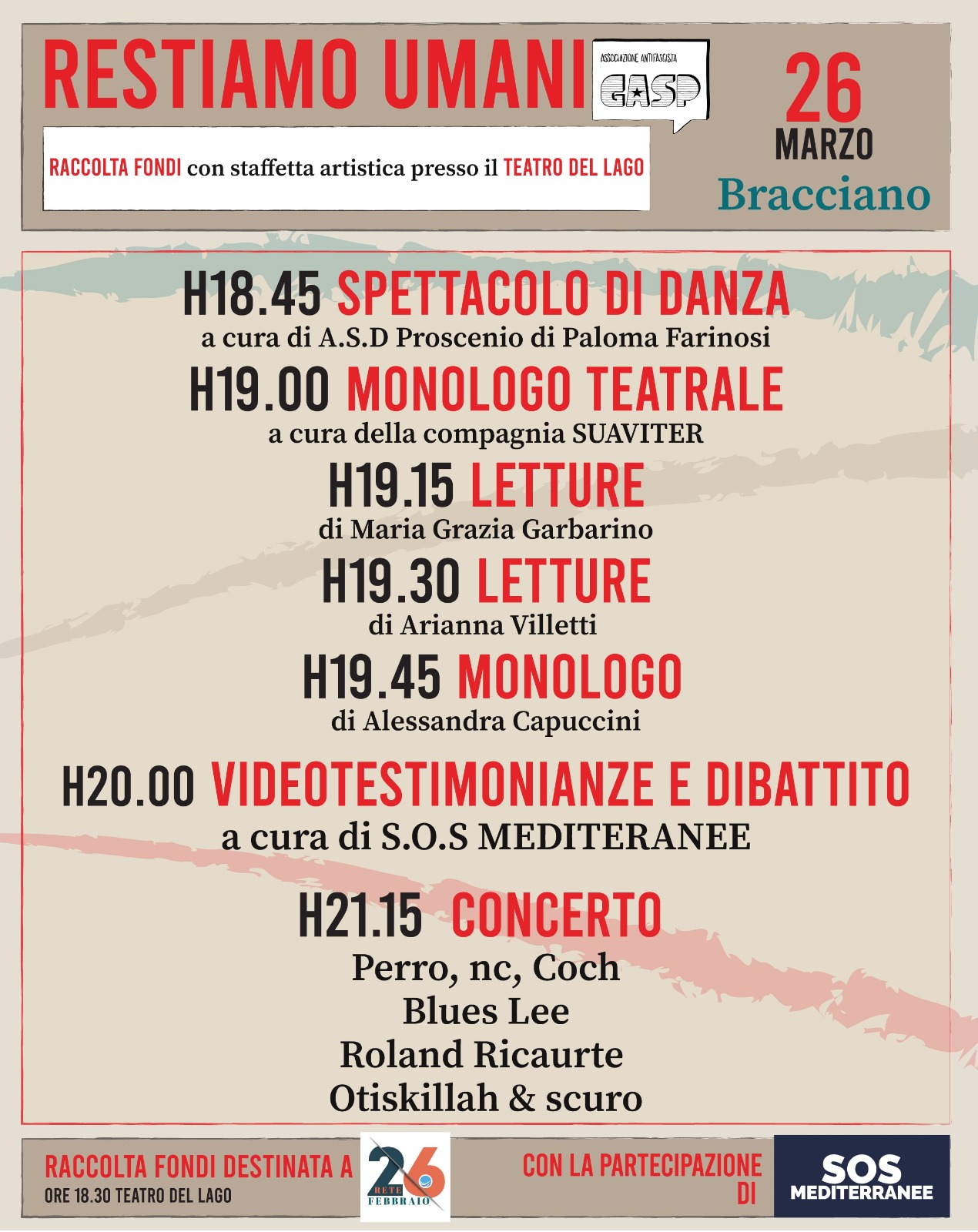 Il 26 marzo a Bracciano il presidio “Restiamo umani”
