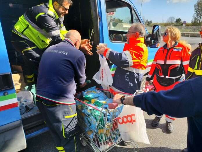 Carrelli pieni di pasta, riso, passate di pomodoro, tonno, legumi, biscotti e prodotti per la colazione, tutto l’occorrente per consentire alla Protezione Civile Comunale di comporre i pacchi di prima necessità da destinare a quella fascia di popolazione più fragile e che necessita di un sostegno immediato e concreto.