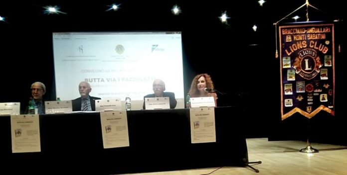 Il socio Lions, generale Bruno Riscaldati, riaffermando i valori e l’impegno dei Lions nella tutela della salute pubblica, ha aperto il convegno “Butta via i Fazzoletti- Di Allergia si può guarire, se sai cosa fare…” Egli presenta l’incontro come occasione propizia per rinsaldare l’iniziativa di creare, nell’ospedale Padre Pio di Bracciano, una struttura dedicata alla diagnosi e cura delle allergie, onde evitare che i pazienti del territorio continuino a recarsi a Civitavecchia per provvedere alle cure. Molto gradito il saluto di benvenuto del parroco Don Fernando Josè CRUZ che, al fine di valorizzare e promuovere la vita, si dichiara felice di mettere a disposizione lo spazio del teatro per eventi e attività utili alla comunità. Il Presidente del Lions Club, Pietro Lombardo, nell’augurare una serata ricca di riflessioni e interventi, ha presentato la dottoressa Sabrina De Federicis, quale relatrice/autrice del libro “BUTTA VIA I FAZZOLETTI” che tratta il tema delle allergie respiratorie e delle terapie desensibilizzanti, come unico rimedio di cura. Antropologa, paleontologa e divulgatrice scientifica, la dottoressa Federicis, si presenta innanzitutto come la mamma di un ragazzo, oggi adulto che, a sei mesi di età, ha avuto le prime manifestazioni allergiche. È una mamma che ha conosciuto il “popolo silente” degli allergici, che vivono nella rassegnazione in una mortificante sequenza di proibizioni e di NO: no animali, no