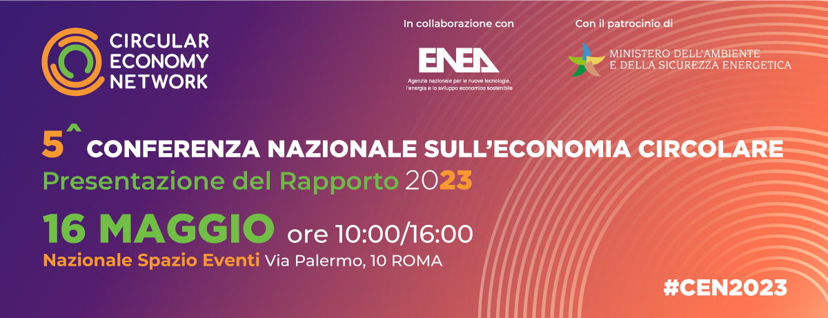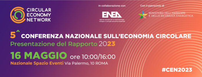 E’ alle viste la quinta Conferenza nazionale sull’economia circolare, organizzata dal Circular Economy network, in collaborazione con ENEA e con il patrocinio del Ministero dell’Ambiente e della Sicurezza Energetica, che si svolgerà il 16 maggio a Roma, presso il Nazionale Spazio Eventi, in Via Palermo 10, dalle ore 10.00 alle ore 16.00.