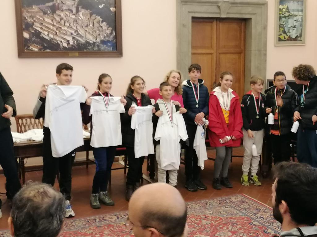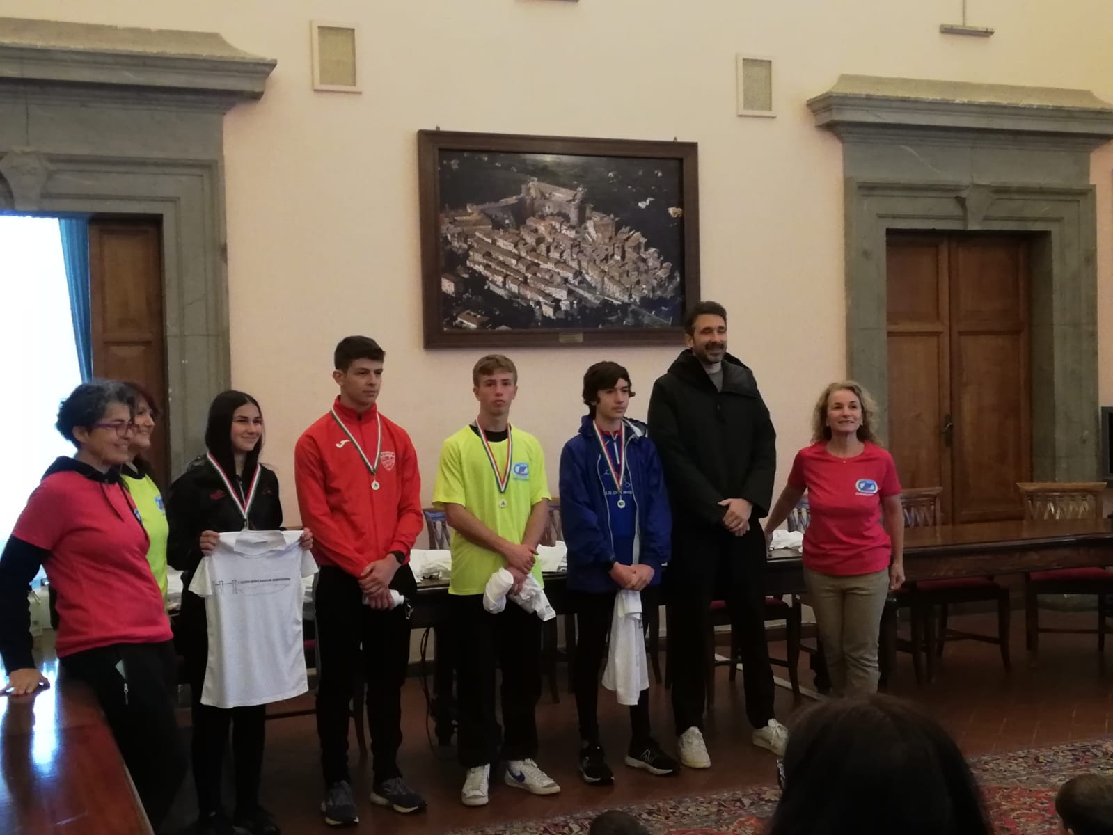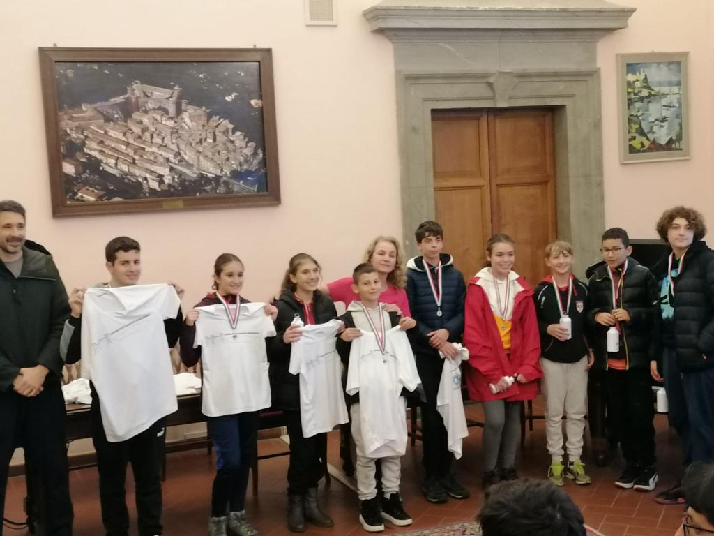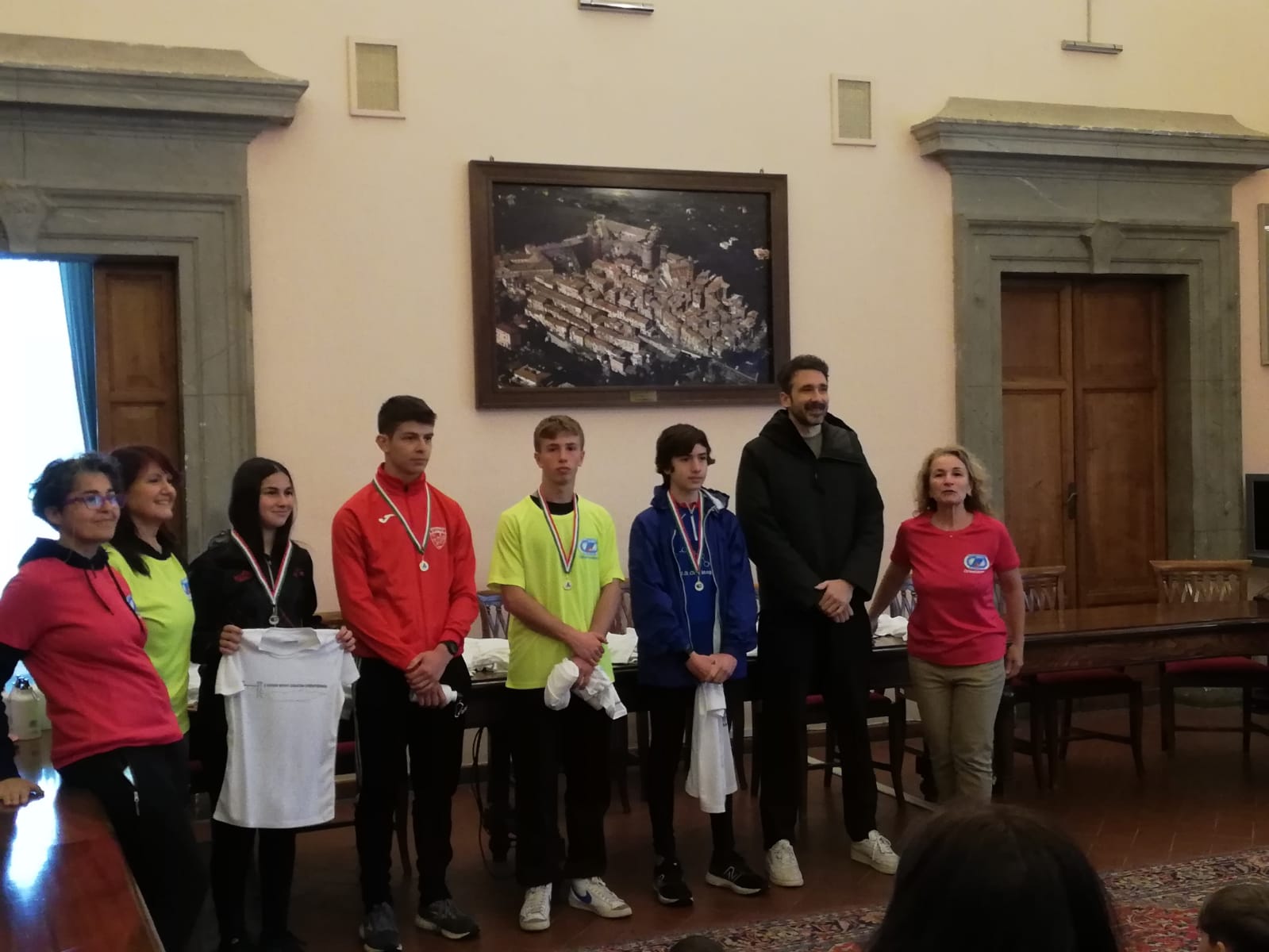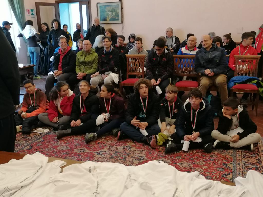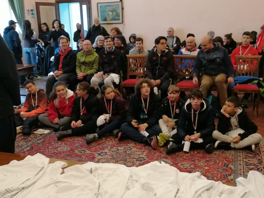 Atleti ed accompagnatori, dopo la gara, si sono riuniti nella sala consiliare per la premiazione In presenza del sindaco Marco Crocicchi, dell’assessora Emanuela Viarengo e del consigliere delegato allo sport Emilio Scarafoni.