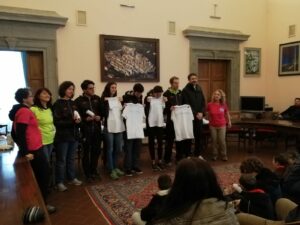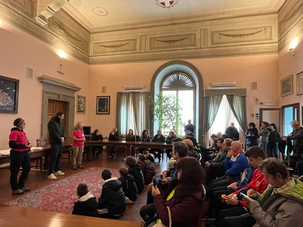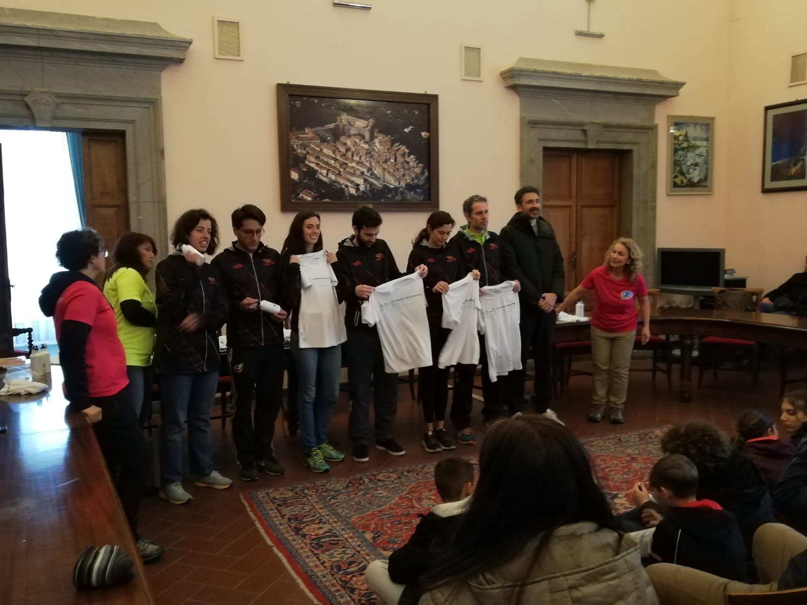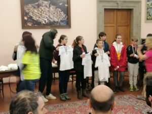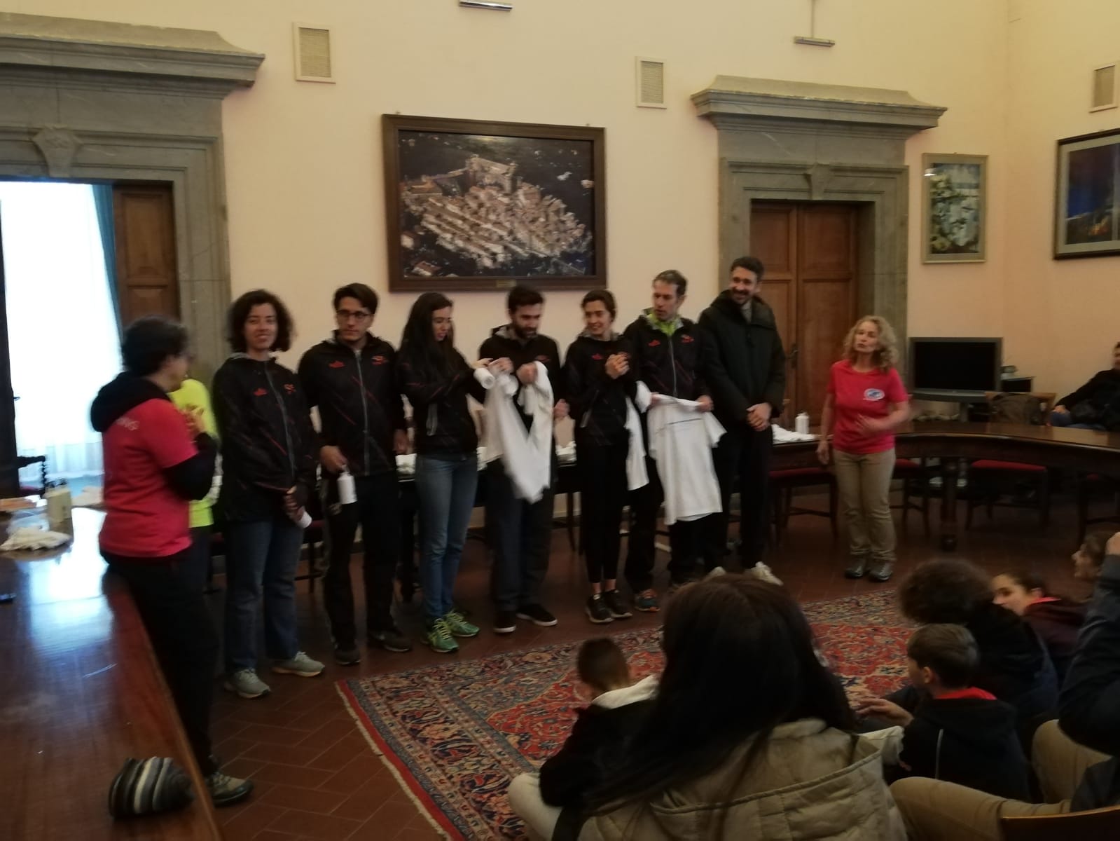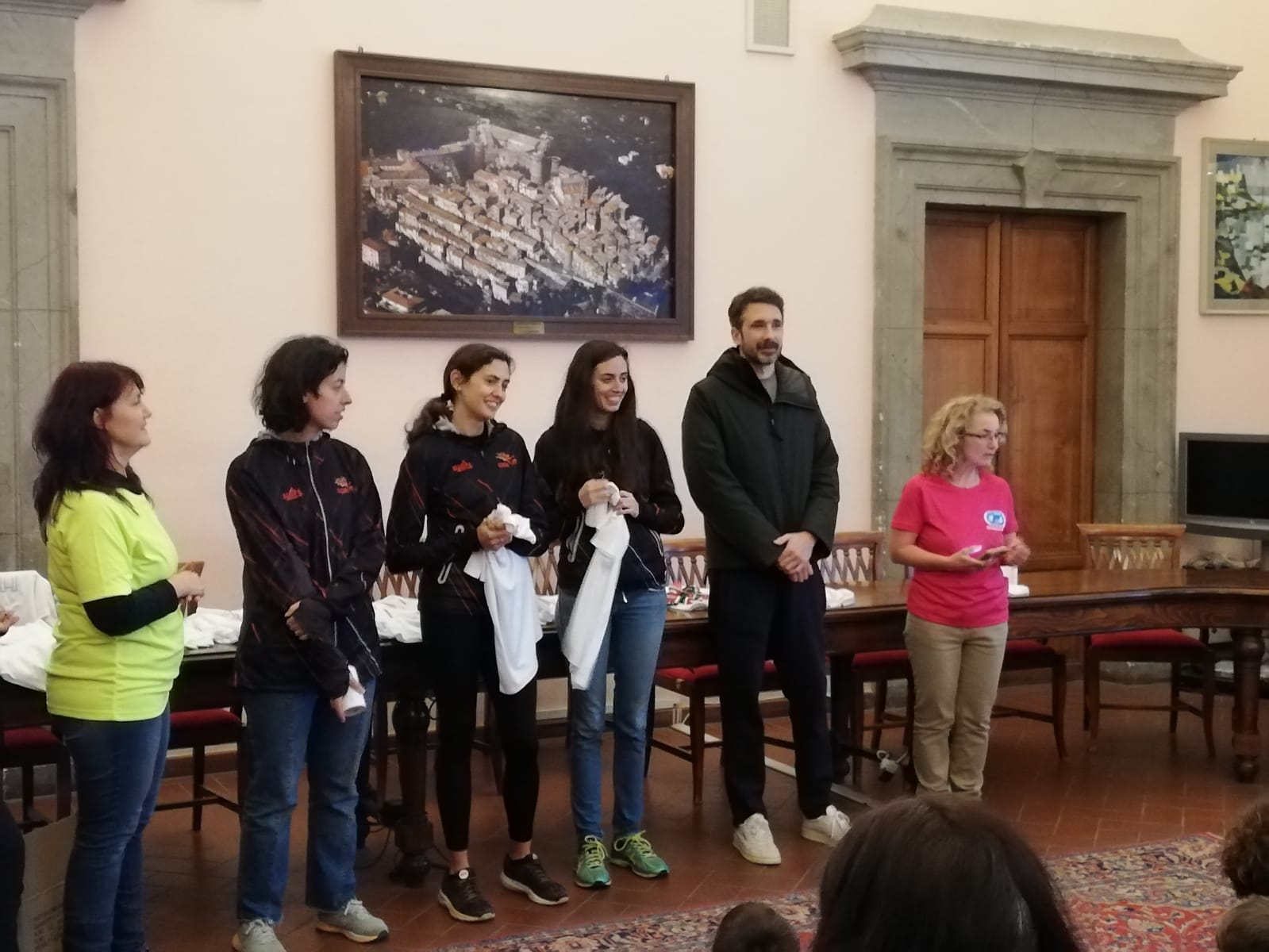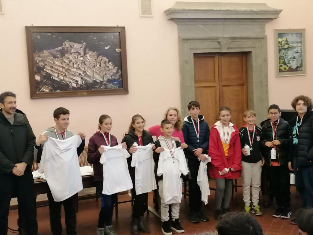 Atleti ed accompagnatori, dopo la gara, si sono riuniti nella sala consiliare per la premiazione In presenza del sindaco Marco Crocicchi, dell’assessora Emanuela Viarengo e del consigliere delegato allo sport Emilio Scarafoni.