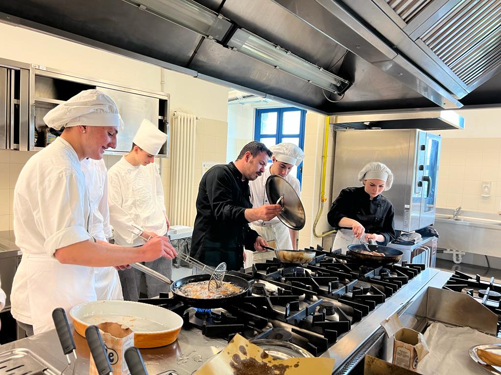 “Ho trovato allievi bravi, preparati e motivati che hanno voglia di apprendere – ha commentato Luca Terni – e questo è molto importante perché la futura ristorazione è in mano a loro. In questo settore è necessaria una formazione adeguata, non l’improvvisazione. Durante questa Masterclass ho puntato soprattutto a focalizzare l’attenzione sull’utilizzo delle materie prime e su una lavorazione che deve essere sempre attenta alla sostenibilità con un occhio che vorrei fosse sempre ben aperto per evitare ogni tipo di sprechi. Non è la prima volta che svolgo Masterclass negli Istituti Professionali Alberghieri, ma devo dire in base alla mia esperienza che ho trovato studenti più coinvolti e motivati già nella Terza classe e questo non è così frequente. Rivolgo quindi i miei complimenti ai Docenti e alla Dirigente scolastica”.