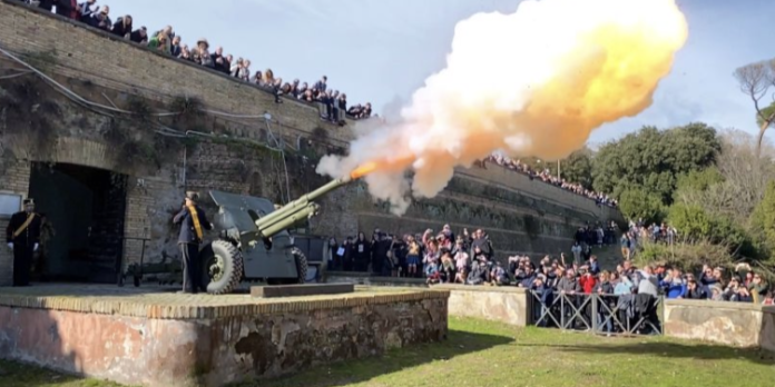 L’uso di segnare il tempo con un colpo di cannone fu introdotto dal Pontefice Pio IX il 1° dicembre 1847 per avere un segnale unico, unificato, dell’ora ufficiale, anziché il suono scoordinato delle campane delle chiese cittadine.