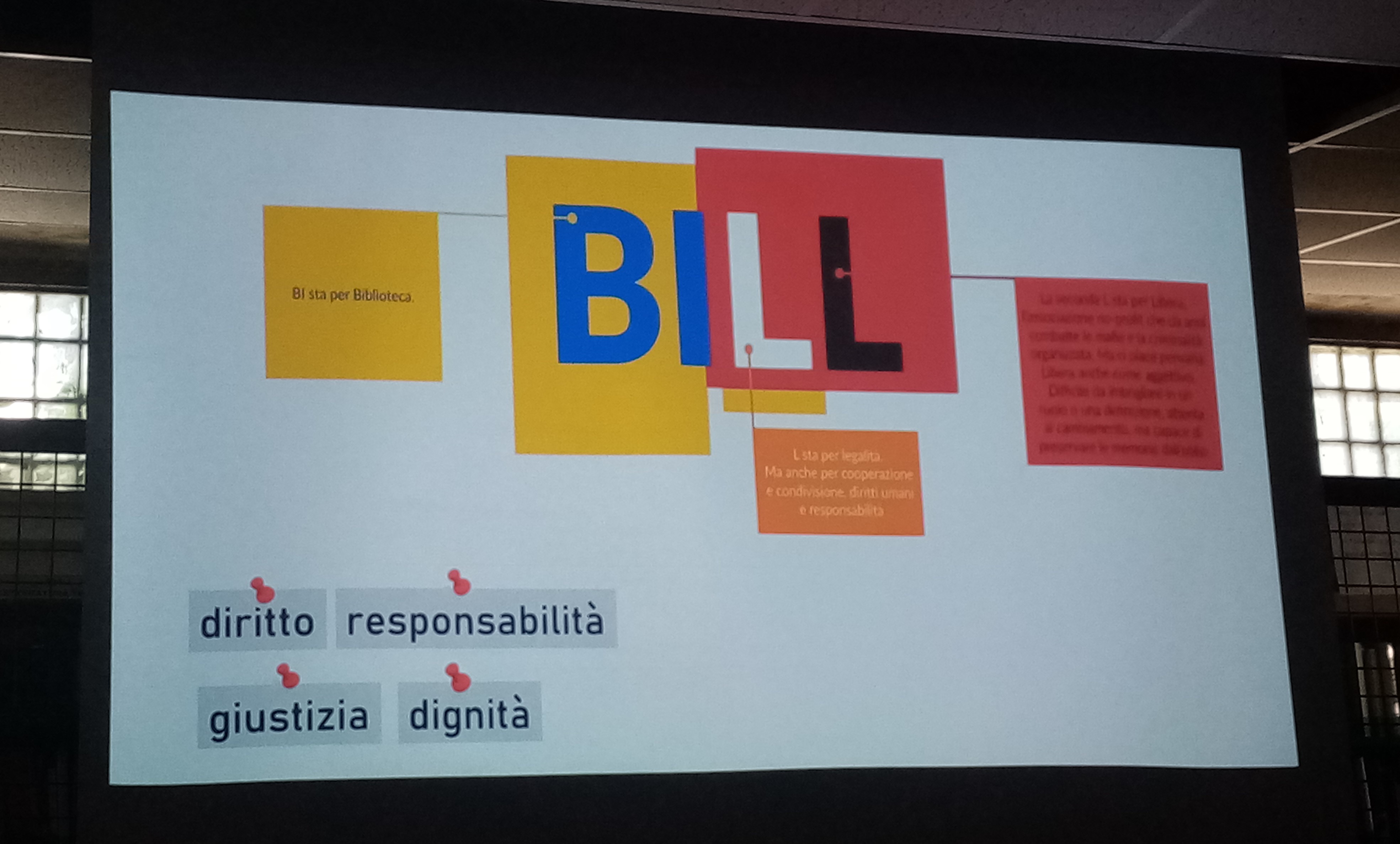 La BILL – Biblioteca della legalità – è un progetto nazionale che nasce dalla convinzione che un paese composto da persone che leggono sia un paese capace di crescere armoniosamente ispirandosi ai solidi principi della nostra Costituzione. BILL è alimentata dal lavoro di una rete di associazioni e di persone, accomunate dalla passione per la promozione della lettura tra le giovani generazioni e l’impegno per la trasmissione di valori di giustizia, lealtà, tolleranza, coraggio e senso civico. Il primo nucleo della BILL è nato nel 2011 a Isola del Piano, un piccolo Comune della provincia di Pesaro-Urbino ed ha preso vita grazie a una rete formata da: il Comune di Isola del Piano, la Fattoria della Legalità che ha sede in quel territorio, Libera sezione di Pesaro e Urbino, l’Associazione Nazionale Magistrati sottosezione di Pesaro, l’AIB Marche, l’ISIA di Urbino, il Forum del libro e Ibby Italia che oggi è capofila del progetto.
