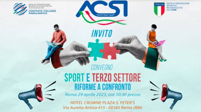 Con il Convegno Sport e Terzo Settore: Riforme a confronto l’ACSI aprirà un costruttivo dialogo sui temi esposti guidato dal suo Presidente Antonino Viti tra i diversi rappresentanti del mondo politico e quello tecnico specialistico come Maria Teresa, Bellucci Viceministro del Lavoro con Delega al Terzo Settore, o Rossana Ciuffetti, Direttore dell’Area Sport Impact, Sport e salute, o Luca Pancalli, Presidente Comitato Paralimpico.
