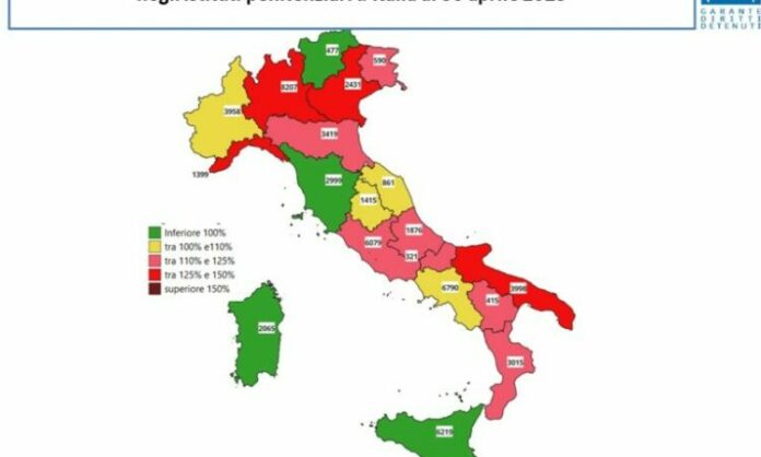 Complessivamente i detenuti presenti in Italia a fine aprile sono 56.674 e sono ben 15 su 20 le regioni in cui il tasso di affollamento supera la soglia del 100%.