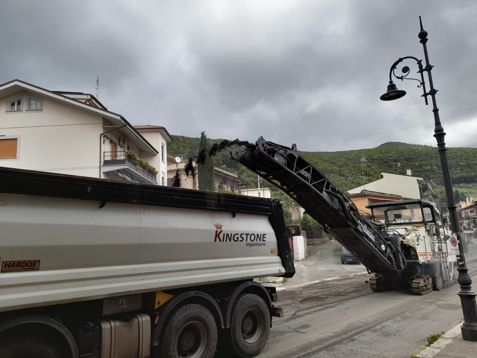 “Sono iniziati i lavori sulla S.P 636 di Palombara all’interno del centro abitato di Moricone, lungo Via Roma.