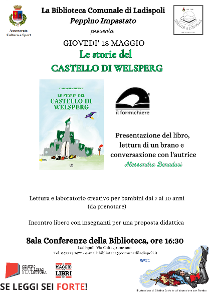Riceviamo e pubblichiamo – L’amministrazione comunale informa che, presso la Biblioteca di Ladispoli, giovedì 18 maggio alle ore 16,30, è in programma la presentazione di “Le storie del Castello di Welsperg “ di Alessandra Benadusi edito da Il Formichiere.
