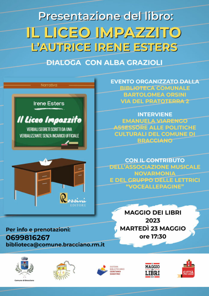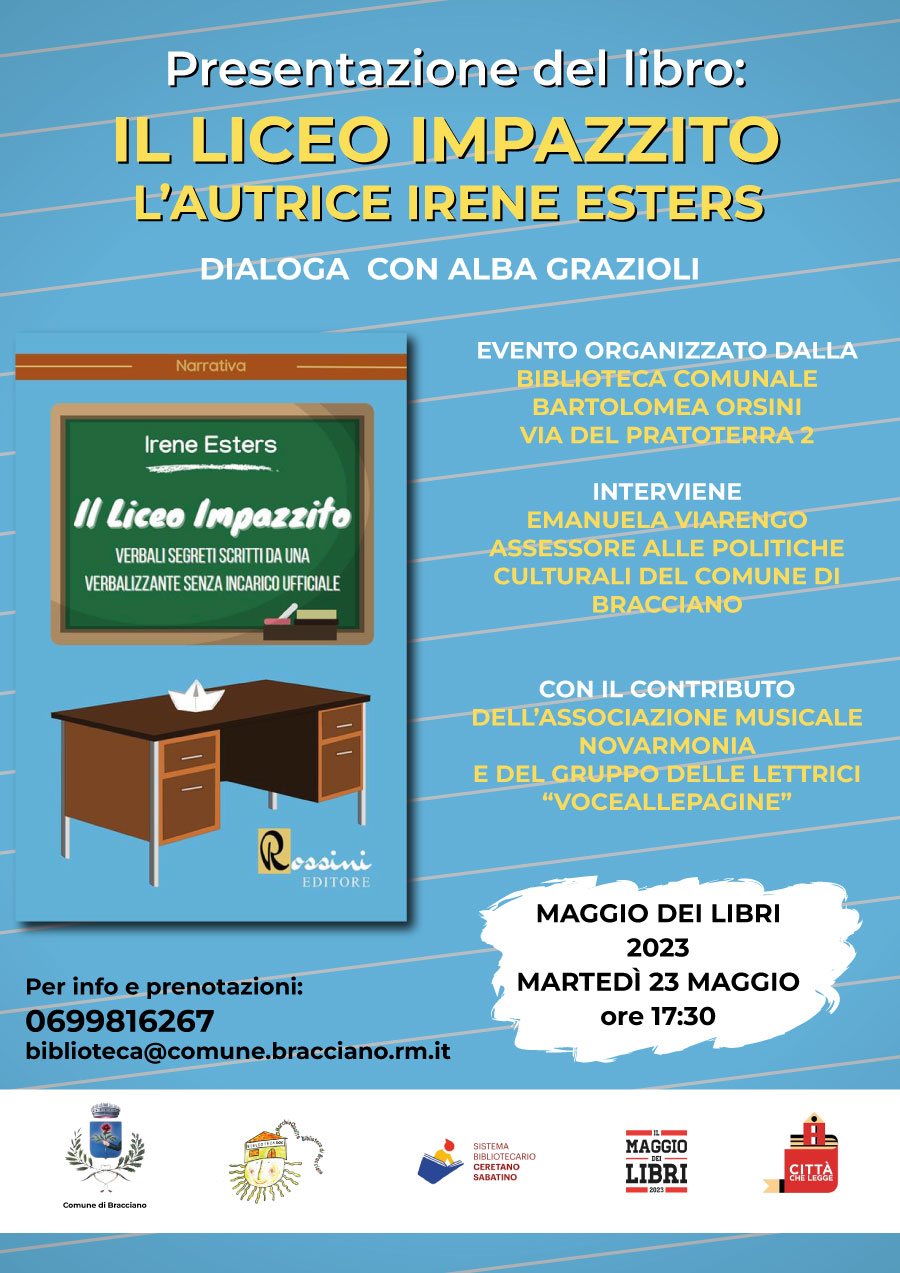 Martedì 23 maggio alle 17.30 nella biblioteca comunale Bartolomea Orsini si terrà la presentazione del libro “Il liceo impazzito” di Irene Esters.
