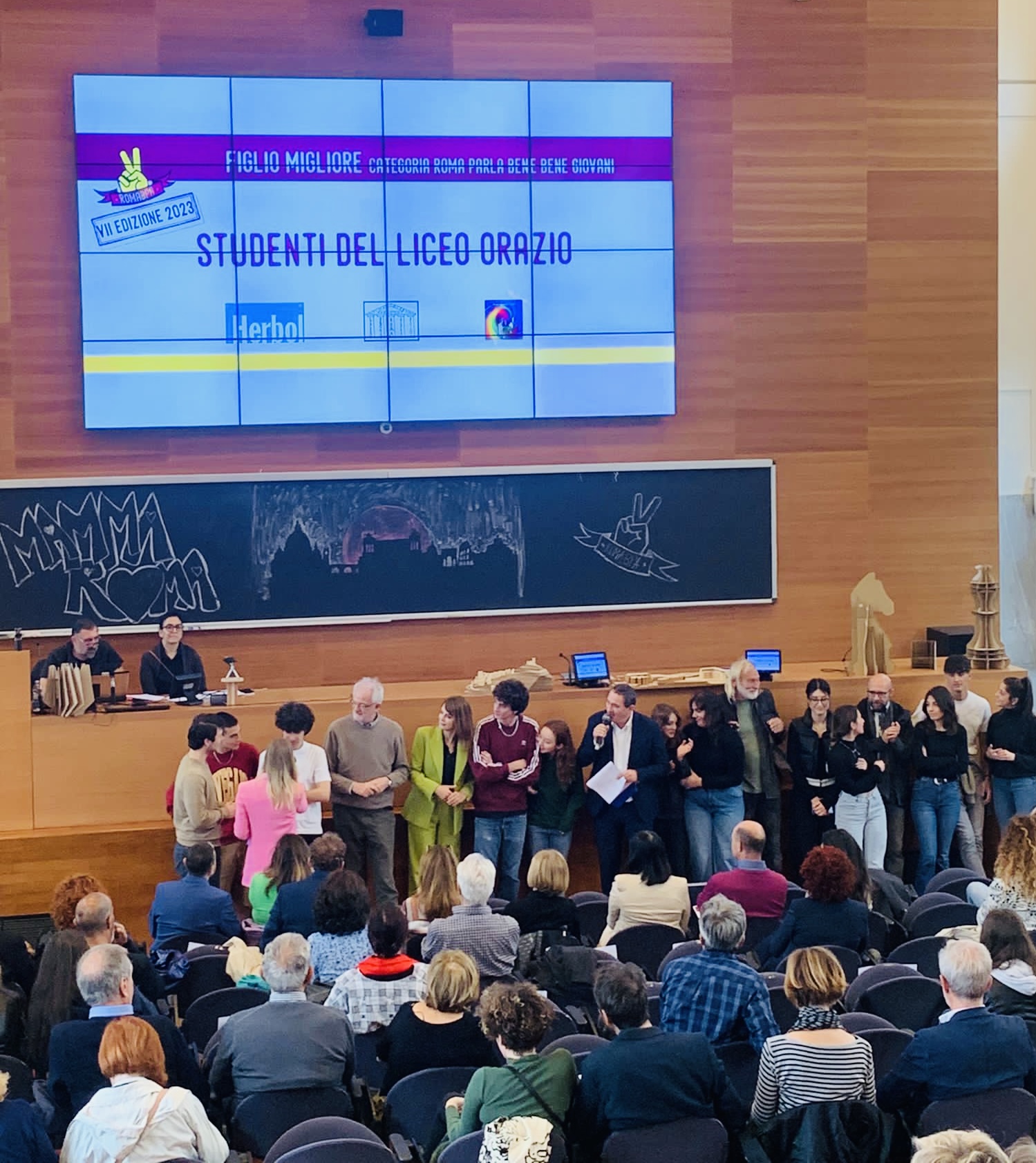 Per la categoria Roma Parla Bene, il premio è andato a Matteo Scarlino per Roma Today, premiato dalla capo redattrice del TGR Roberta Serdoz, per Roma Parla Bene Giovani gli studenti del Liceo Orazio premiati da Michele Di Sivo, Direttore dell’Archivio Storico di Roma.