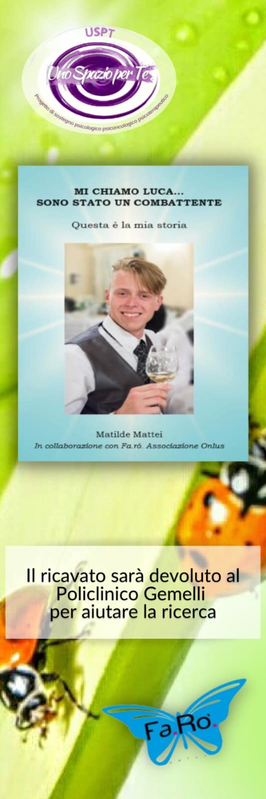 Dalla magica penna di Matilde Mattei la narrazione della storia di un ragazzo come tanti, che nella sua esperienza di malattia non ha rinunciato al diritto della “normalità”della sua età, assaporando la vita fino in fondo. Una grande lezione per tutti. Nella settimana del sollievo organizzata dall’hospice Carlo ChenIs, con il quale USpT collabora in questo evento, siamo onorati di poter sostenere e portare avanti l’ennesima.prova che la potenza dell’amore può andare oltre qualsiasi cosa. E Maria Pia e Alberto, genitori di Luca, ce lo insegnano.