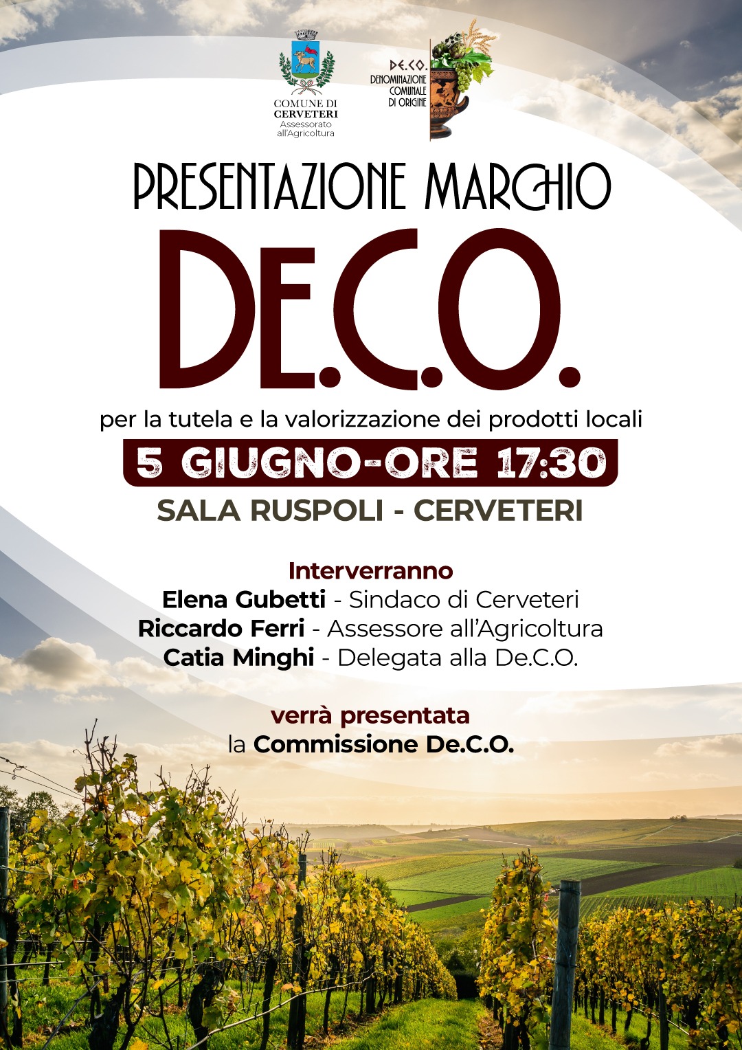 Conservare nel tempo prodotti che si identificano con gli usi e che fanno parte della cultura popolare locale, tutelare la storia, le tradizioni, il patrimonio culturale e i sapori legati alle produzioni tipiche locali. Con questi obiettivi nasce a Cerveteri la De.Co., la Denominazione Comunale di Origine, voluta fortemente dall’Assessore alle Politiche Agricole del Comune di Cerveteri Riccardo Ferri, un’operazione che punta a dare un marchio identificativo a produttori del territorio, storie, saperi e tradizioni locali.