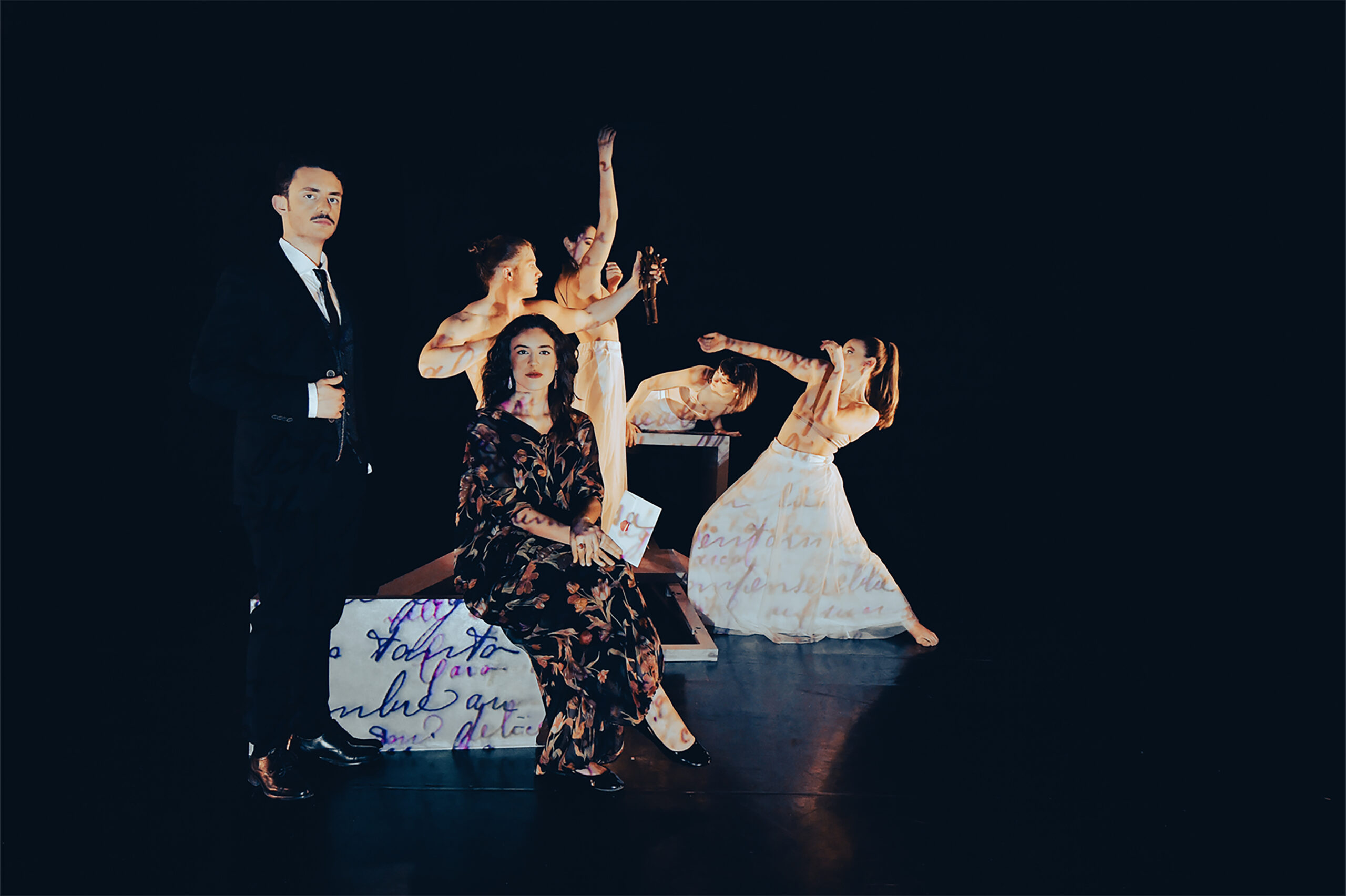 Coprodotto da Mandala Dance Company, AiCS – Dipartimento Cultura e Danza – e Paesaggi del Corpo Festival Internazionale Danza Contemporanea, lo spettacolo mette in scena due dimensioni poco conosciute del celebre poeta Giovanni Pascoli, rivelando l’immagine di un artista e di una personalità ancora più grande e moderna di quel che ci è potuta apparire attraverso le poesie che si trovano nei libri di scuola. Le ricerche e i libri di Francesca Sensini, docente dell’Università di Nizza e scrittrice, che ispirano la regia di Daniele Lamuraglia e le coreografie di Paola Sorressa per questo spettacolo di teatro-danza, hanno messo in risalto l’importanza delle relazioni di Pascoli con alcune figure femminili – reali, immaginarie, simboliche, mitologiche – e il ruolo fondamentale che hanno avuto sulla sua vita e sulla sua poetica. Si presenta quindi un sorprendente rinnovamento di quell’immagine tradizionale di Pascoli, triste, isolato, lacrimoso, a cui la narrazione mainstream non attribuisce nessun amore e nessun legame profondo con una donna, oltre alle sorelle Ida e Maria. Ma si tratta appunto di un altro clamoroso falso storico che pesa sul destino del “poeta maledetto” della nostra letteratura, finalmente trasformato in bellezza artistica da questi libri e dallo spettacolo di Mandala Dance Company.