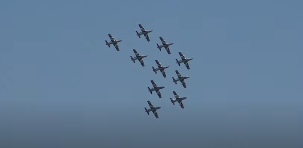 Il volo di prova effettuato dalle Frecce Tricolori oggi, venerdì 16 giugno, sull’aeroporto militare “Mario de Bernardi” di Pratica di Mare (Roma) in occasione della manifestazione aerea organizzata dall’Aeronautica Militare per celebrare il 100° anniversario della sua costituzione.