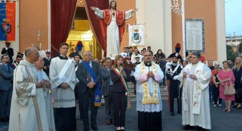Ciampino festeggia il suo Santo Patrono, il Sacro Cuore di Gesù. Una ricorrenza molto sentita dalla comunità locale che ogni anno viene celebrata tra le vie cittadine per tre giorni consecutivi. Ad organizzare l’intera manifestazione è il Comitato dei Festeggiamenti della Parrocchia, in collaborazione con la Pro Loco della Città di Ciampino, con il patrocinio del Comune. La Città metropolitana di Roma ha partecipato ai festeggiamenti con il delegato del Sindaco, il Consigliere metropolitano Nicola Marini. Ad onorare la festa Il Consigliere metropolitano, Nicola MARINI, che al suo arrivo è stato accolto dalla Sindaca, Emanuela COLELLA e dalle Autorità presenti