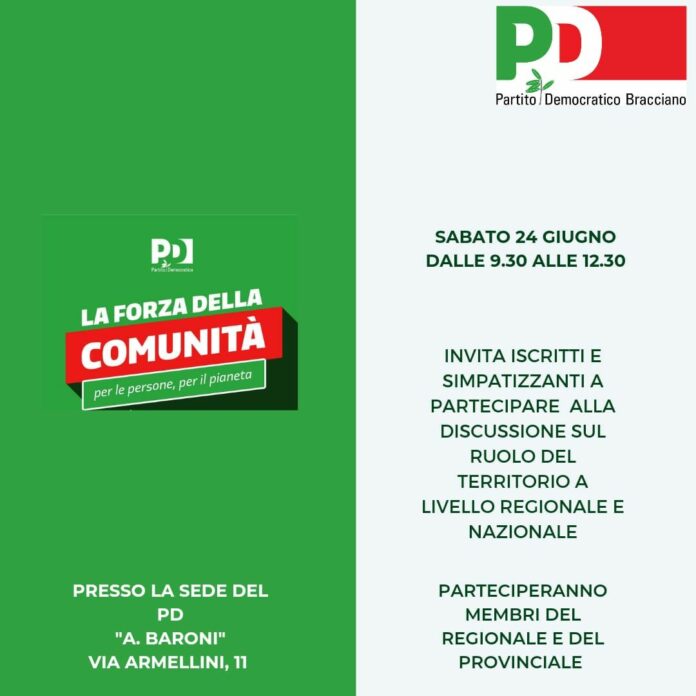 Dopo le primarie che hanno portato all’elezione di Daniele Leodori come Segretario regionale del PD Lazio, riprendono i lavori sul territorio. Come circolo abbiamo invitato alcuni membri tra coloro che sono stati eletti all’assemblea regionale, in particolare coloro che provengono dal nostro territorio. Interverranno: Manuele Magagnini Brunella Franceschini Luca Galloni Inoltre interverranno Marco Ferrari, segretario di Manziana e membro della segreteria provinciale Giacomo De Vito portavoce GD Ladispoli- Cerveteri. La discussione verterà sul ruolo del territorio in ambito regionale e nazionale e su come ripartire dai circoli. Vi aspettiamo numerosi!!