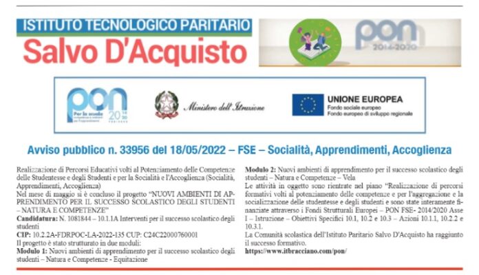 Salvo D’Acquisto, l’avviso pubblico (Pon)