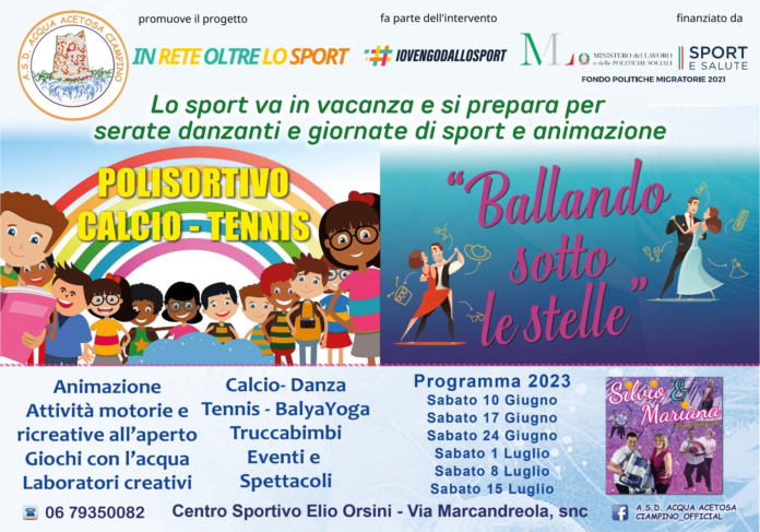 Un progetto ambizioso che procede a vele spiegate. Intanto l’ASD Acqua Acetosa da appuntamento al prossimo appuntamento di Sabato 15 Luglio per l’ultima serata di “Ballando sotto le stelle”.