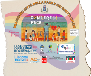 Il Cantiere di Pace è uno spazio di partecipazione istituito dall’Amministrazione Comunale di Bracciano nel 2022 e animato dall’ Associazione Generazione Musica, l’Associazione Sostegno della Vita, Anguillara Bene Comune, Pax Christi, la Misericordia di Bracciano, l’Associazione G.A.S.P., l’A.N.P.I. Sezione “Antonio Quintiliani”, l’Agone Nuovo, l’Associazione Pandora e la CGIL SPI di Bracciano.