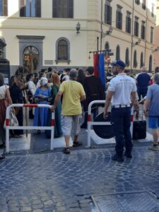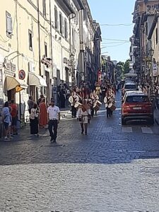 Dopo tanti anni dame, cavalieri, armi, spadaccini e suoni di tamburi tornano a rianimare strade e vie dell’antico borgo di Bracciano, dove per due giorni sarà possibile rivivere le atmosfere medioevali e rinascimentali, che richiamano l’origine della cittadina. Un viaggio nel passato fatto di suoni, odori e sapori, viene regalato a turisti e residenti dai tanti figuranti che già dal tardo pomeriggio di sabato 15 luglio con un lungo corteo hanno aperto ufficialmente la due giorni dell’evento intitolato “Arti e Mestieri”. Al calar del sole, sfidando le alte temperature, i suoni dei tamburi hanno così riecheggiato lungo via Principe di Napoli fin sotto la piazza del Castello, dove un folto pubblico ha assistito alle esibizioni itineranti del gruppo storico Spadaccini di Soriano Del Cimino. “E’ tanta l’emozione che proviamo nel riprendere questo evento che abbiamo curato fino a luglio 2015 e che quest’anno siamo tornati a realizzare con il supporto e la collaborazione dell’Amministrazione Comunale di Bracciano”, ci ha detto Rinaldo Borzetti, tra gli esponenti più attivi de La Compagnia del Castello, che ha da sempre voluto e realizzato la manifestazione, alla quale contribuiscono il Rione Monti, la Pro Loco e l’Associazione Commercianti, ABC HOST e Camminare per Unire. Con “Arti e Mestieri” sarà possibile degustare tra i vicoli e le piazze del cuore di Bracciano pietanze in stile medioevali preparate proprio dagli abili “cucinieri” del Rione Monti. Quest’edizione di “Arti e Mestieri” sarà dedicata in particolar modo alla figura di Gianni Flamini, scomparso poco meno di un mese fa, uomo che con la sua gentilezza e presenza ha caratterizzato per decenni gli eventi culturali, religiosi e tradizionali più sentiti di Bracciano. A lui sarà dedicato il Palio messo in premio dalla Pro Loco per chi si aggiudicherà le gare di tiro alla fune e tiro dell’arco, che si svolgeranno in piazza del Castello alle 22.00 delle due serate della festa, a sfidarsi saranno: Rione Monti, Compagnia del Castello, Castel Giuliano e Vigna di Valle.