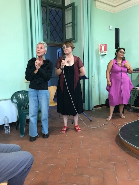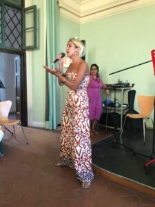 Luigia de Michele, interpretando un brano tratto da “I fuochi” di Marguerite Yourcenar ha dato vita ad una attuale Clitemnestra in riferimento a una donna che viene rinchiusa in manicomio. Del resto, anche nel mito, Clitemnestra, moglie di Agamennone, era nota come pazza, vendicatrice e violenta; lei uccise il marito per vendicare la figlia Ifigenia da lui fatta sacrificare e per punirlo di avere portato in casa, quasi fosse un trofeo di guerra, la giovane Cassandra. Le recitazioni sono state intervallate da apprezzatissime performances, eseguite da cantanti della Scuola di Musica “Il Prato dei Suoni”; l’insegnante Daniela Virgili che la dirige si è esibita in un gradevole brano dove l’amore è vissuto in ogni respiro dell’altro. Molto applauditi anche: il sedicenne Valerio Littera con un pezzo inedito, arrangiato da Marco Rinalduzzi, sul tema dell’indifferenza dei sentimenti nell’adolescenza; Alessia Montesano con il suo inedito su un amore fresco e unico, musicato da Mario Rinalduzzi. L’evento si è chiuso con una piacevolissima esibizione della ballerina Flavia Laera, della scuola di musica Elite Accademy Ballet di Bracciano. Stefania e Luigia hanno dimostrato di avere ben chiaro un concetto: “leggere in pubblico è una grande responsabilità”.