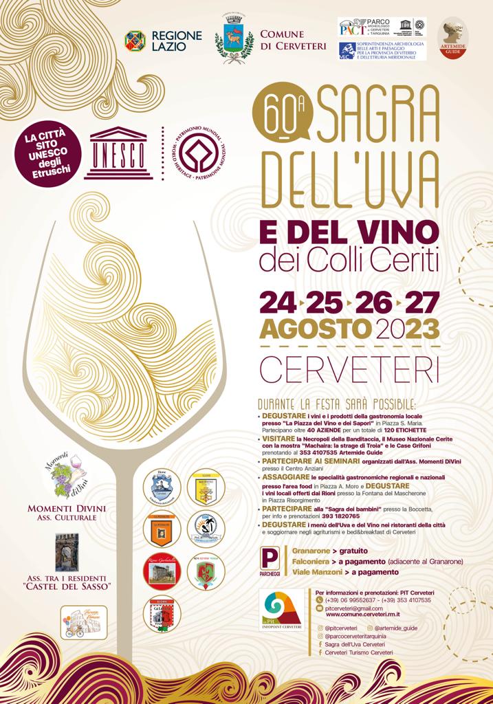 Sarà presentata domani pomeriggio, martedì 22 agosto, alle ore 18:30 in Piazza Risorgimento a Cerveteri, la 60esima edizione della Sagra dell’Uva e del Vino dei Colli Ceriti.