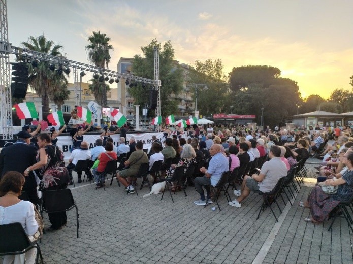 A Ladispoli, in piazza Rossellini, la sera del 23 agosto si è svolta la cerimonia di premiazione delle opere in concorso nella prima “Biennale Internazionale d’Arte della Riviera Romana”. Il Sindaco di Ladispoli Alessandro Grando, il Vescovo di Santa Rufina, Gianrico Ruzza, l’onorevole Alessandra Mussolini, esponenti del mondo della cultura e dello spettacolo, introdotti dalla presentatrice Silvia Catallo, hanno consegnato i premi, di fronte a un pubblico numeroso, eterogeneo, ma unito dall’amore per l’arte. Ben 500 artisti di diverse nazionalità si sono confrontati in questa prima edizione, nata dalla “visione”, dalla competenza e dall’energia dell’assessore alla cultura Margherita Frappa, coadiuvata dal critico d’arte Roberto Litta.