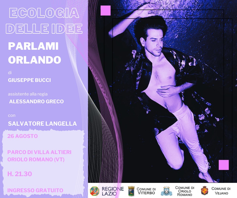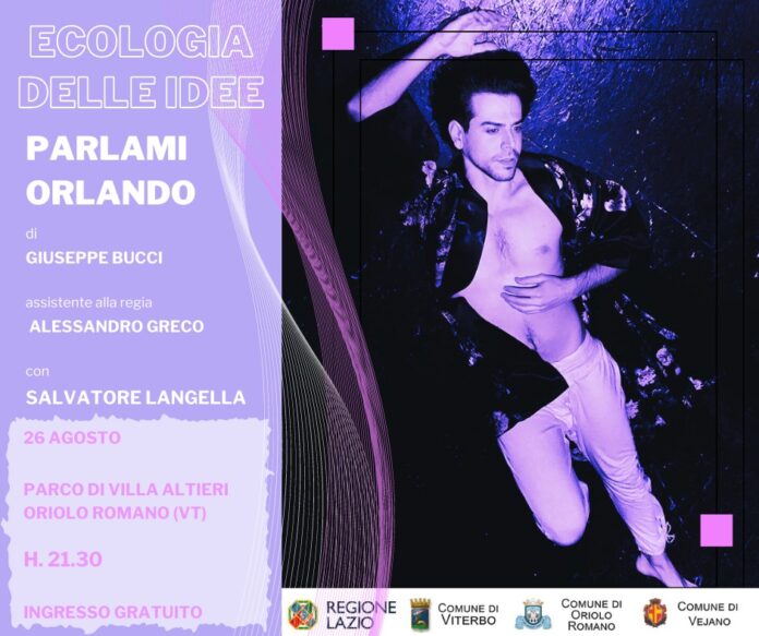 Parlami Orlando è l’originale reinterpretazione di Giuseppe Bucci del romanzo Orlando scritto da Virginia Woolf, opera pubblicata nel 1928 che tutt’ora conserva tematiche attuali che interessano il dibattito pubblico come la posizione della donna, la sessualità e le dinamiche di genere all’interno della società.