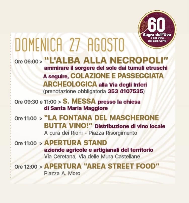 Cerveteri, oggi la quarta giornata della sagra dell’uva