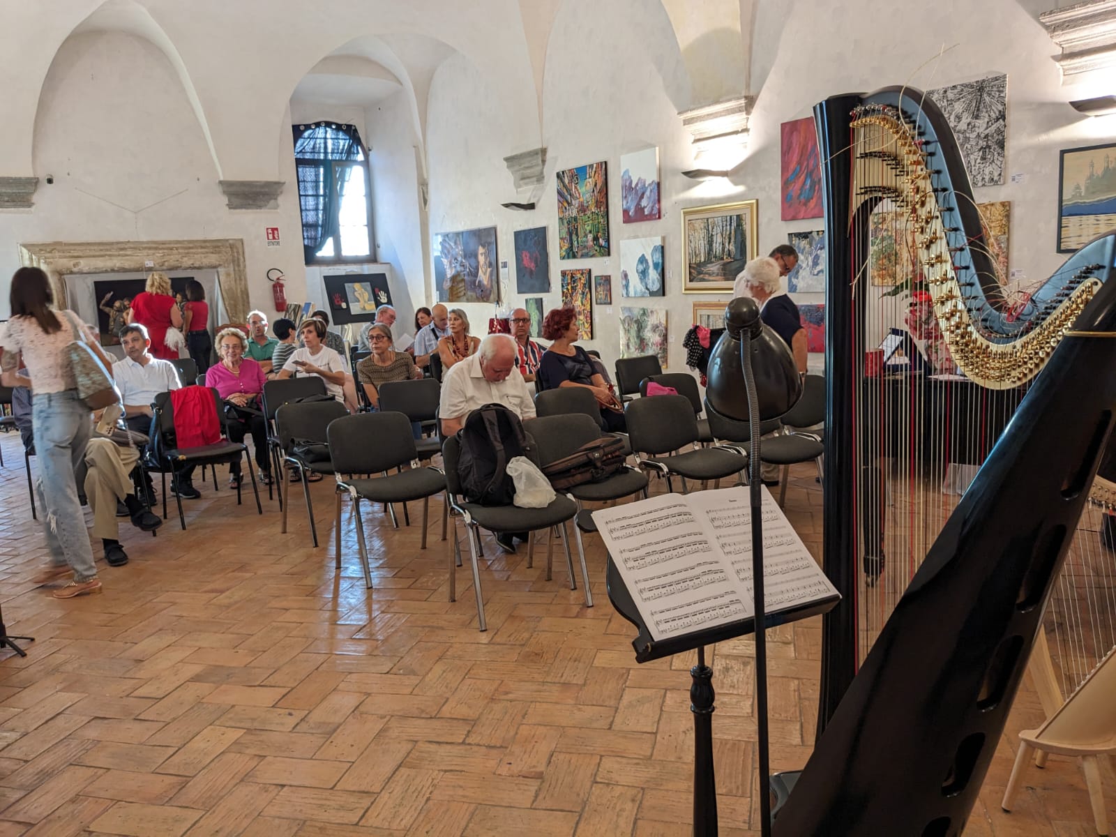 Alle 15 presentazione del libro “amen” di Chiara Mutti a cura dell’Associazione Koinèt, alle ore 18 Finissage con brani a quattro mani al pianoforte suonati dalle Maestre Elisa Viscarelli e Giulia Casilli. Chiusura alle 21.