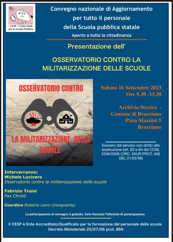 Contro la militarizzazione delle scuole, la presentazione a Bracciano