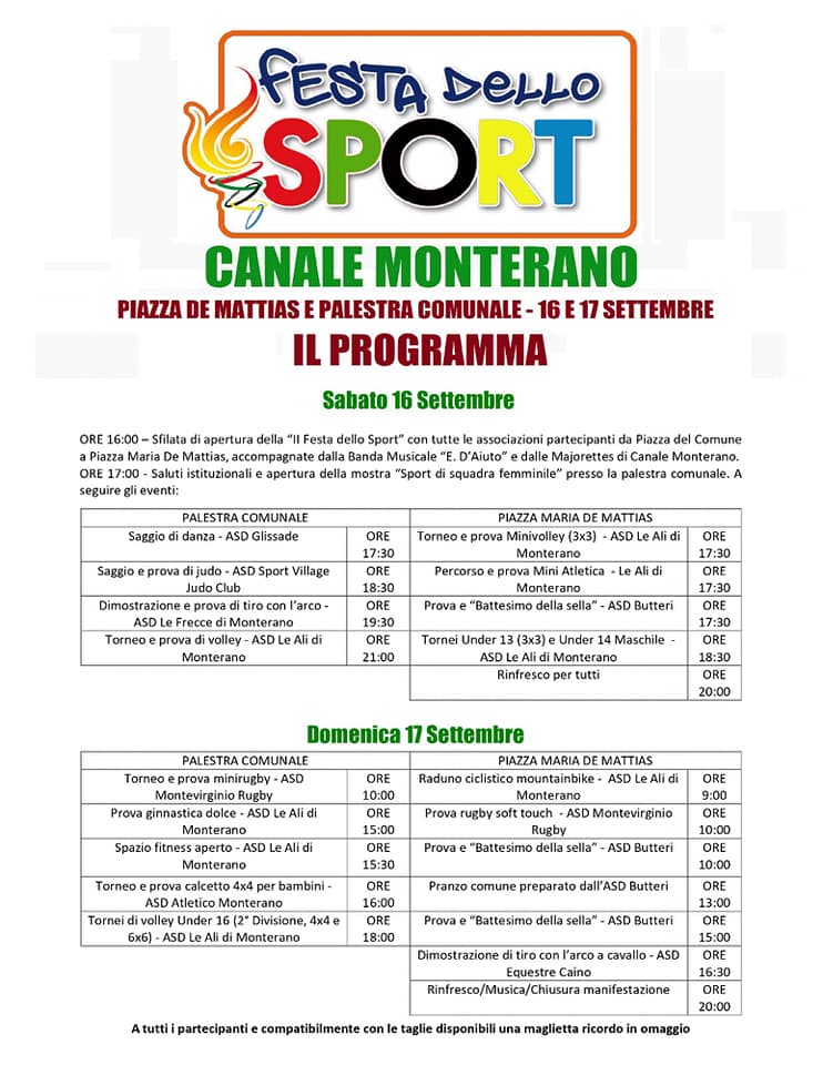 Canale Monterano, porte aperte alla festa dello sport