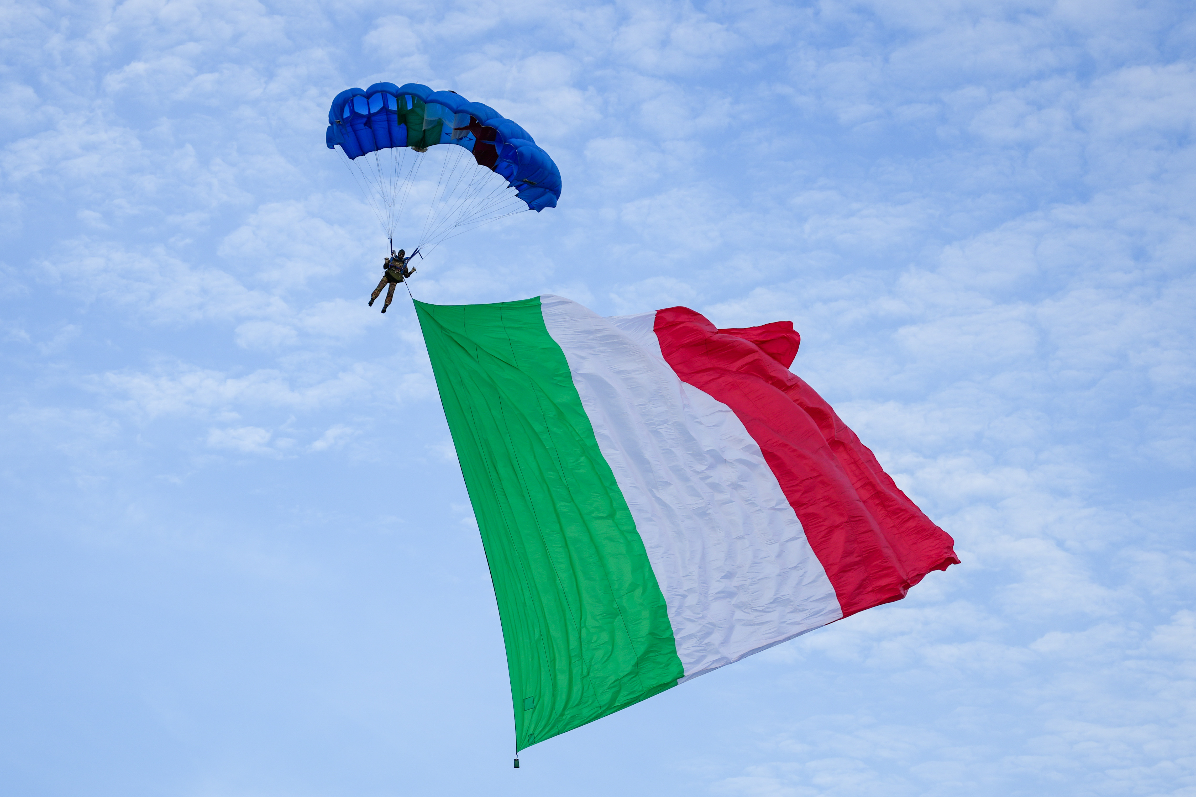 Alla cerimonia di apertura il tricolore e la bandiera FEI hanno sventolato, dopo essere state “paracadutate” dal personale del Centro Sportivo Esercito di Pisa.