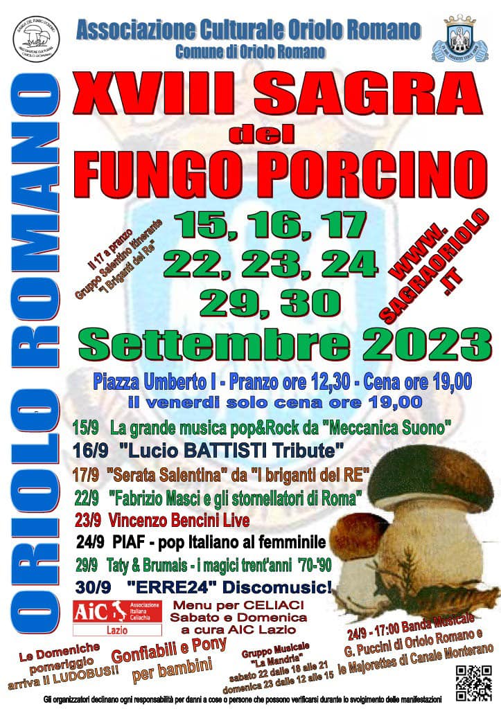 Torna l’appuntamento settembrino in Piazza Umberto I con la sagra del fungo porcino, organizzata dall’ACOR, giunta quest’anno alla XVIII edizione.