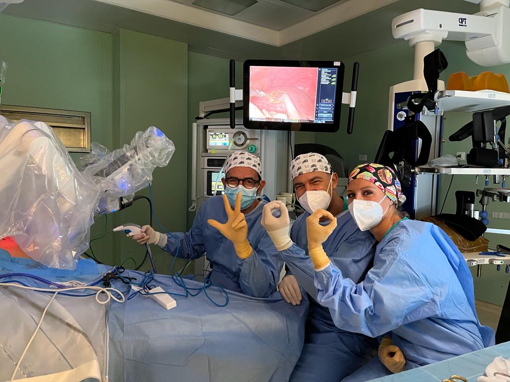 Questo braccio si aggiunge al sistema già in uso Da Vinci che – con una resezione robotica per neoplasia effettuata dal Direttore della Chirurgia oncologica Stefano Mancini coadiuvato dal Dott. Benedetto Battaglia, dal Dott. Andrea Sagnotta e dalla équipe – è arrivato al 300esimo intervento.
