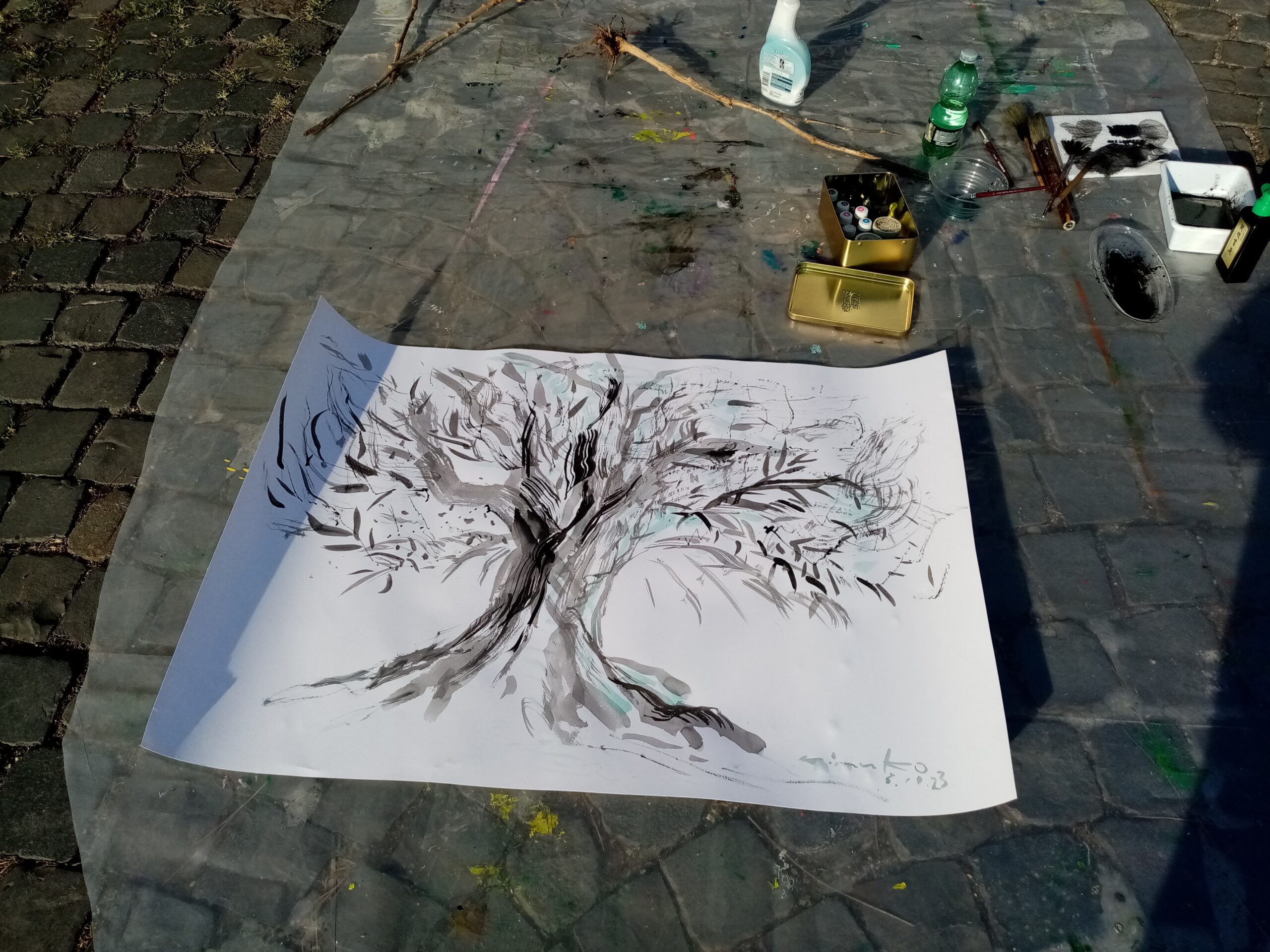 Durante l’incontro, altri cittadini del Comitato, hanno animato la piazza del Comune di Trevignano con istallazioni artistiche e disegni giapponesi sul tema della difesa degli alberi oltre a distribuire volantini in cui si invita la cittadinanza a segnalare eventuali abbattimenti.
