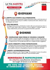 Lavoro, fisco, giovani, pensioni, stato sociale, politiche industriali, pace e rispetto della Costituzione. Questi sono i temi al centro della manifestazione nella capitale alla quale, secondo gli organizzatori hanno partecipato circa 200mila persone.