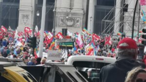 Si è svolta la manifestazione contro la manovra 2024 organizzata dalla Cgil a Roma, alla quale hanno aderito più di cento associazioni, laiche e cattoliche, dallo slogan “La via maestra è la Costituzione”. Uno dei due cortei che compongono la mobilitazione voluta dall’organizzazione sindacale è partito da piazzale dei Partigiani e si è conclusa a piazza San Giovanni. La giornata di oggi avvicina la Cgil allo sciopero generale e con il sindacato anche la segretaria Pd Schlein e il sindaco di Roma Gualtieri.