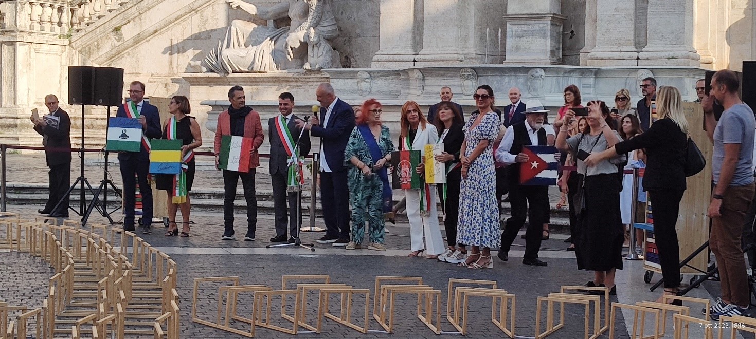 L’evento è iniziato nell’aula Giulio Cesare del Campidoglio alla presenza dei due artisti, dei Consiglieri di Città metropolitana Tiziana Biolghini e Mariano Angelucci, alla presenza delle rappresentanze diplomatiche invitate, dei Comuni metropolitani e dei Municipi di Roma, con la proiezione in apertura del video di Andrea Rusich.